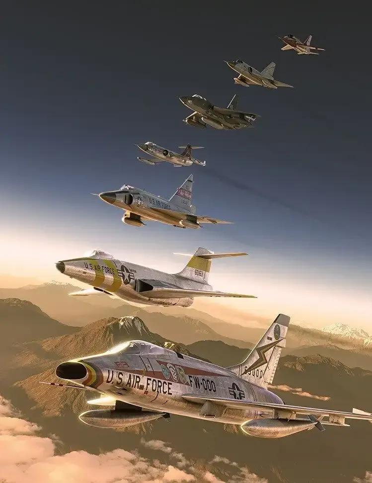 百系战机的背景是50年代,在朝鲜战争中,美国人被米格-15战斗机打得怀疑人生,虽然凭借数量优势并没有吃太大亏,但标榜于技术先进的美国一直想搞出一款能跨代碾压米格15的战斗机。