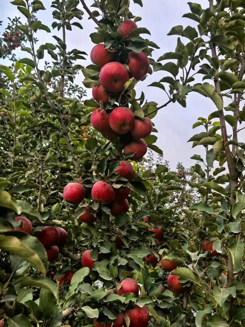 他种的这种叫王林苹果,普通园子一般亩产1-2吨左右,他这是精心管理的老园子,每亩地的产量要高不少。