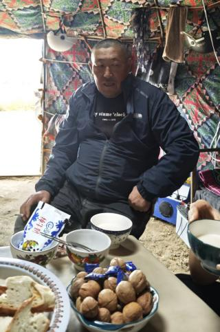 小布家客厅,她家用手抓饭、烤羊肉串、馕、南瓜馅薄皮包子招待我们