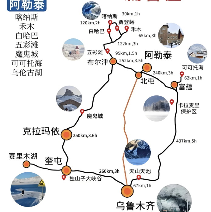 2021年12月,投资101亿的沙漠公路阿乌高速通车,从那以后,从乌鲁木齐出发,经过古尔班通古特沙漠到达阿勒泰,只要3.5-4小时。