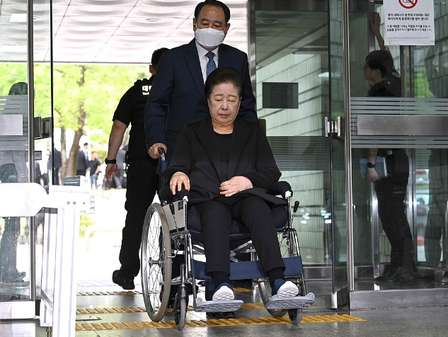 92岁的“统一教”总裁韩鹤子,坐在轮椅上,被推出首尔中央地方法院大楼。她的脸上没有任何表情,但这场面却震撼了韩国政坛。