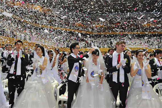 参加集体婚礼的教徒还需缴纳一笔费用,金额因人而异。仅1995年那一次“乱点鸳鸯”,“统一教”从中获取的收入便不低于1亿美元,真可谓生财有道。