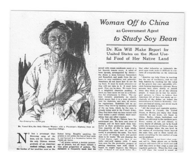 《纽约时报》对金韵梅赴中国研究大豆的报道