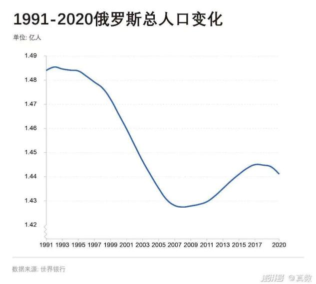 第四次人口危机是上世纪90年代的混乱时期,俄罗斯人口从1992 年的1.48亿,下降到2000年的1.46亿。社会转轨时期的动荡不安,导致俄罗斯民众普遍对国家前途和自身未来感到迷茫,缺乏安全感和稳定感,人们的生育意愿显著降低,出现大量移民潮。比如,俄罗斯境内的大量犹太人返回以色列。