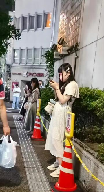 这一排就是大久保站街的小姐姐们,红色雪花筒是警方故意放置在这,以阻挡女性站街