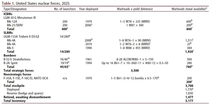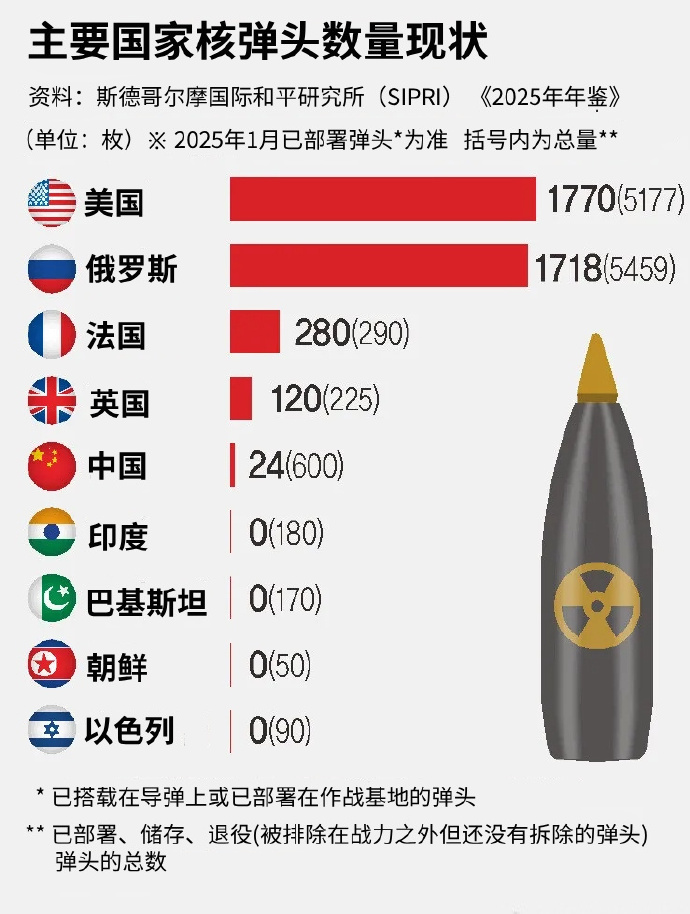 美国的核弹头总共3500多枚,但部署的也就1700,不到一半。核战争一旦打起来,没有核载具的核弹头,毫无意义。
