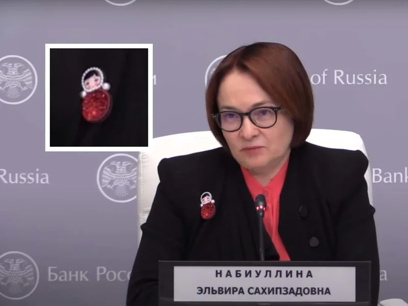 外界逐渐看出了门道,如果胸针是“鹰”,则意味着高利率的紧缩性货币政策,“鸽”则意味着宽松的货币环境。2022年之后,纳比乌林纳更喜欢佩戴俄罗斯套娃式样的不倒翁胸针,言下之意很简单,俄罗斯经济打不倒。