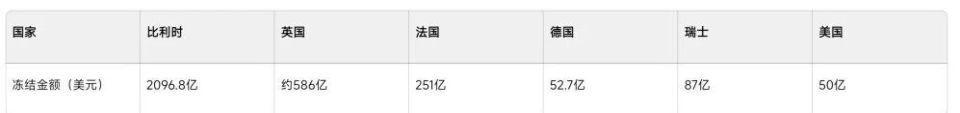 欧洲是俄罗斯海外资产分布的大头,美国才50亿,英国500多亿,欧盟则有2400多亿。