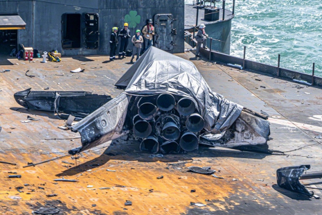 2015年1月10日,猎鹰9号CRS-5回收试验,火箭掉在了驳船改装的着陆平台上,发生爆炸。