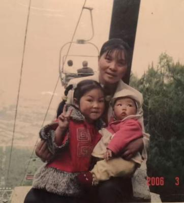 2006年,马胜花和两个女儿在大理合影