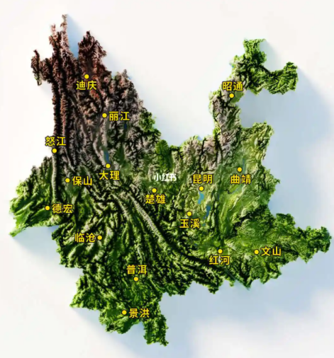 摊开云南地形图,可以看到云南明显分为东西两大块,东部是更接近贵州的滇东喀斯特高原和滇中红土高原,西部则是横断山脉区域,从天空俯瞰,可见到云南各城市,零零碎碎散落在各处山坳坳的坝子当中。