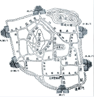 总之,现在昆明老城的主体结构,草纲来源于元朝,1381年沐英与傅友德平云南,第二年在元城基础上修筑砖城,昆明六门龟城、从南门(丽正门)到都察院(今人民中路附近)的南北轴线被锁定,昆明主城区定型。