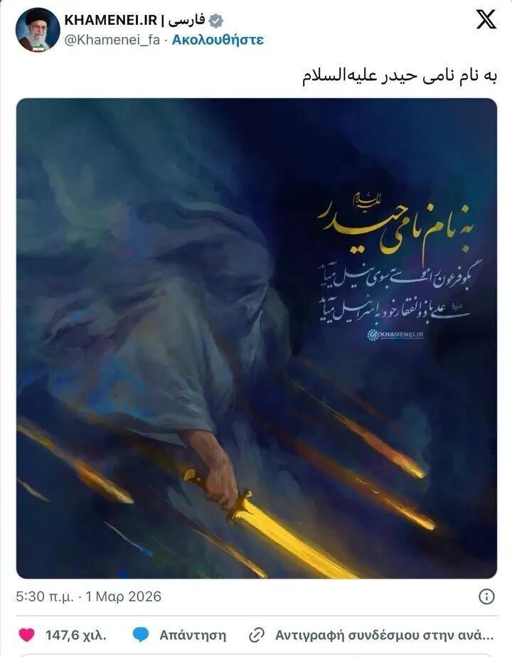 在烈士叙事中,哈梅内伊则成了为了保卫伊斯兰流尽最后一滴血的圣徒,以色列和美国主动扮演了当年那个杀害先知孙子的邪恶暴君。