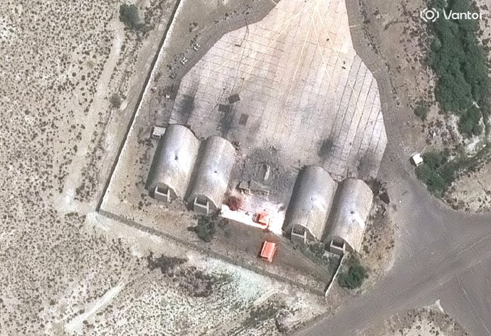 但是呢?请大家看看这张照片,每个机堡中间,都有一个小孔,而机堡大门处,有明显的放射状燃烧痕迹。