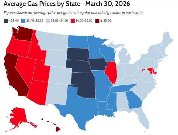 目前,布伦特油价维持在100美元以上高位,油价飙升加剧美国通胀,全美汽油均价突破每加仑4美元,创4年来新高。