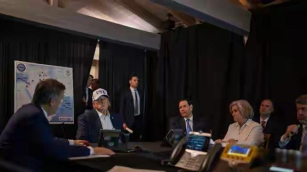 当晚,特朗普在海湖庄园绝密战情室实时监控作战直播,旁边是赫格塞思、鲁比奥、威特科夫和库什纳等人。