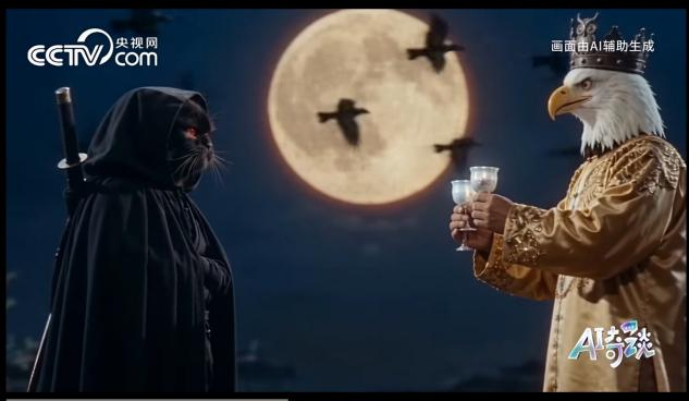 央妈最近出了一台AI短剧《流金谷恩仇录》,一边是疯狂加戏、反复横跳的白鹰盟主;一边是闭门不见人、人狠话不多的波斯猫堂主,双方都在耗着,比谁先眨眼,像极了熬鹰场面。