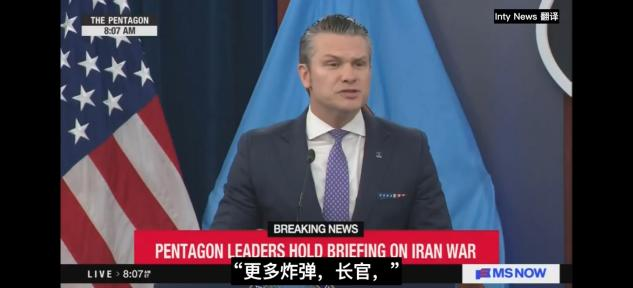直到3月31日,赫格塞思还在放狠话。他声情并茂地讲述了前两天秘密访问中东军事基地的故事,一名年轻女兵一脸坚毅告诉他,“长官,我们需要更多的炸弹,威力更大的炸弹”。