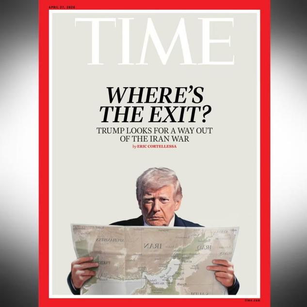 《时代》周刊忍不住讽刺,给了特朗普一个特写封面,老特两眼瞪着地图,琢磨着如何退出战争。标题是“敢问路在何方”。