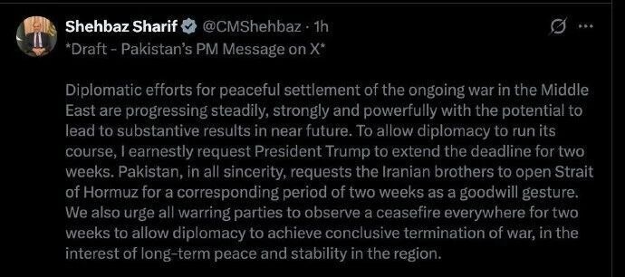 在特朗普TACO后,巴基斯坦总理发了个文,大意是感谢美伊双方给他这么大面子,并邀请双方于4月10日前往伊斯兰堡继续谈判。
