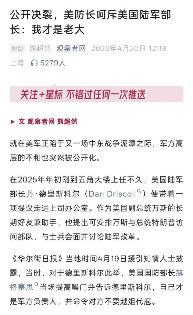 无论伊朗战争最终走向如何,军方主战与反战两派的深刻撕裂,已严重动摇美军内部稳定。