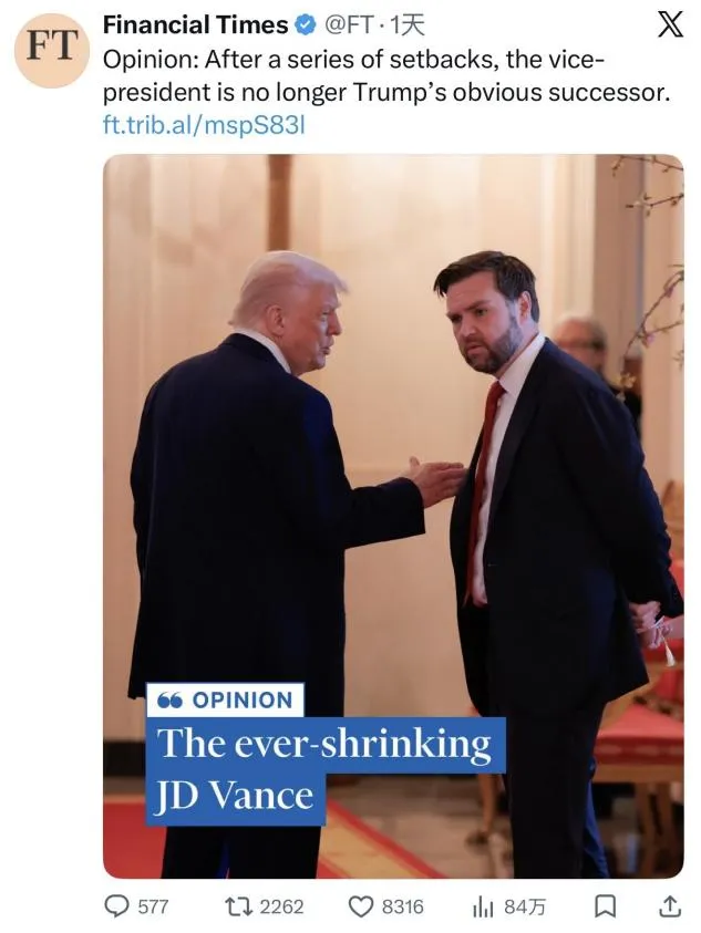 《金融时报》更是直接点明,万斯已不再是特朗普头号接班人选。