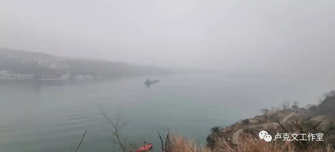 南津关上游,两岸还是陡峭的壁仞,将江水夹在中间,出南津关后,江面陡然开阔起来,江面呈深绿色,两岸散落着白墙灰瓦的民居,江面上烟雾缭绕,看起来似水墨画一般。