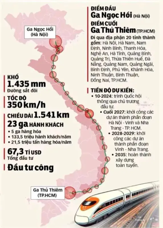 这一高铁计划北起河内,南至胡志明市,主线全长1541公里,途经20个省市,设有23个客运站和5个货运站(还搞货运站,有病啊!),拟完工日期为2035年。